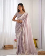 The beautiful designer saree defines an elegant evening wear pick. Wear this saree with a pair of metallic heels. Mix it with sleek bag to complete the look. This saree is all about blending style with comfort.